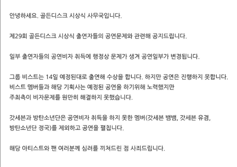 잘못은 골든디스크가 하고 사과는 가수가 해서 더 짜증ㅅㅂㅅㅂㅅㅂㅅㅂ