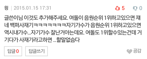 그런데 민아또한 데뷔전 학교에서 착하고 이쁜 학생으로 소문나고 전혀 그럴만한 과거도없었음. 심지어 그댓글은 인증없이 오직 저 한마디. 그런데 추천많이 받고 예비베플...ㅋㅋㅋㅋㅋㅋ