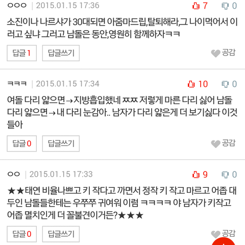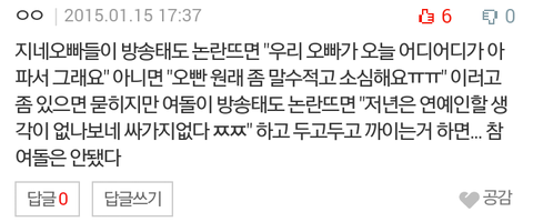 앞뒤가안맞는게 남아돌과 여아돌반응차이는 어쩔수없이 여기가 여초고 여아돌의 여덕은 소수라서 어쩔수없다.