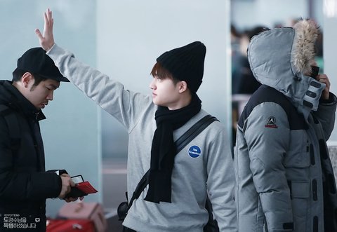 141030 뮤직뱅크 인 멕시코 내려가면서 팬들에게 인사해주는 경수