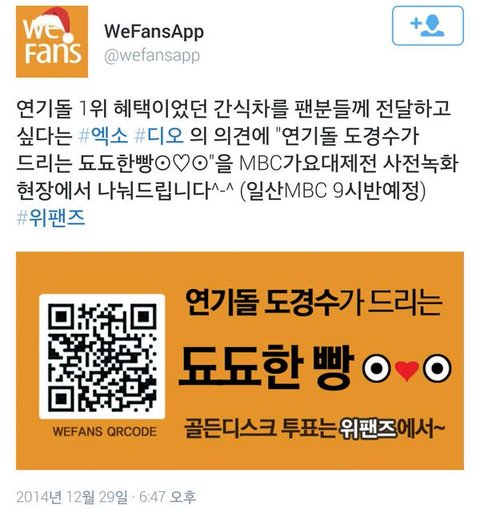 자신이 받을수있던 빵 간식차를 가요대제전에오는 팬들이 받는것을 원해