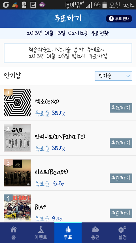 드디어 투표 따라잡혔어 이제 곧 잉.피한테 역전당할거야!!!!! 오늘도 힘내 투먹금들!!
