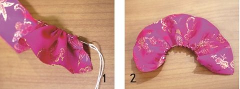 체리빛나는 한복 원단 25cm 밑단을 바느질로 홈질하면서 주름지게 당겨서 해주세요