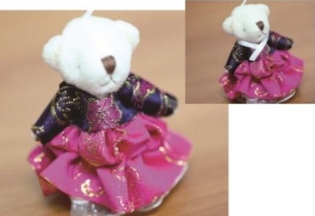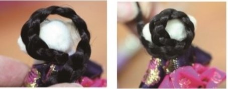댕기로 곰돌이 머리에 똬리를 틀듯 꼬아주는데, 저는 귀를 감싸면서 비스듬히 꼬아주었어요