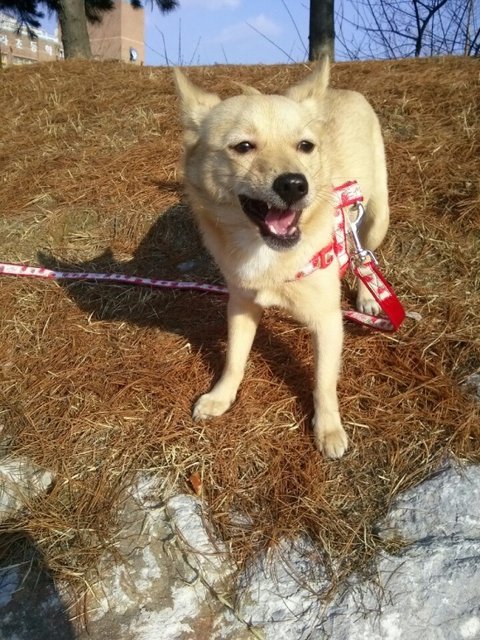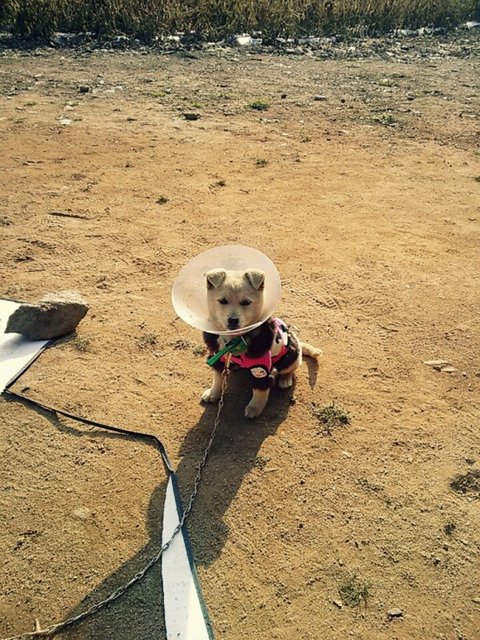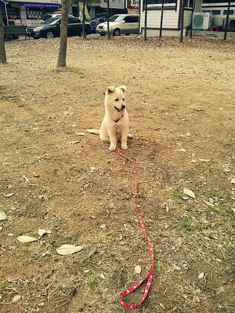 시골견의 필수 아이템 쇠 목줄도 버리고 빨간 목줄로도 바꿔줬어요 ㅎㅎ!
