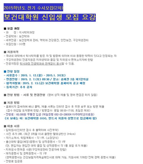 - 합격자발표:2015.02.13 (월) 보건대학원 홈페이지 공고 예정