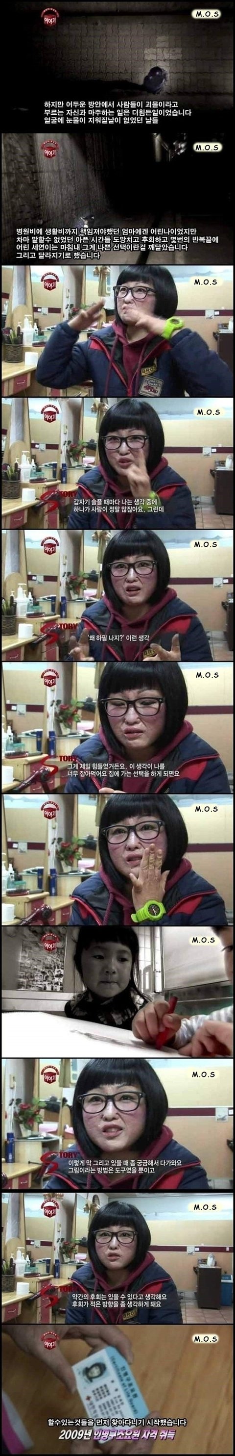 모바일로 일일이 확대해가며 읽어 본 수고로움이 헛되지 않는 글이었습니다. 말이 쉽지, 저렇게 세상 밖으로 나오기가 보통 용기가 아니었을텐데... 그녀의 용기에 너무나 큰 감동을 받고 갑니다T.T 아울러 화상 환자분들도 그녀의 용기를 보시고 더욱 힘내어 살아가셨으면 좋겠습니다. 일반분들도 화상 환자들을 너무 이상하게 쳐다보거나 손가락질하거나 입방아에 올리거나 하는 행동도 삼가고 사회의 평범한 일원으로 생각했으면 하네요.