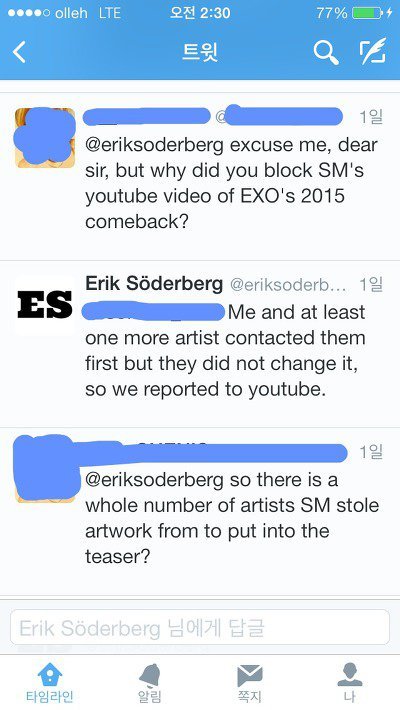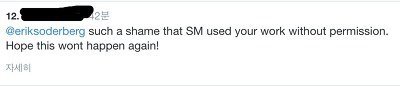 1. 팬 : SM이 너의 작품을 허락없이 사용해서 너무 부끄럽다. 이런 일이 다시 일어나지 않기를 바란다