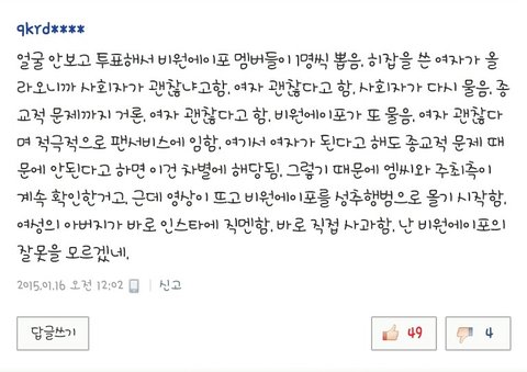 보시면 아시겠지만 진짜 B1A4는 아무 잘못 없거든요 오히려 팬분이 더 좋아서 B1A4를 끌어안고 난리인데