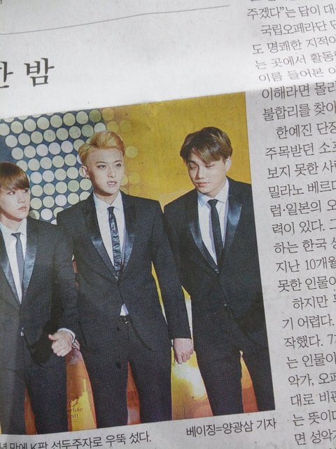오늘자 신문보는데 세훈 경수 종인이봨ㅋㅋㅋㅋㅋㅋ