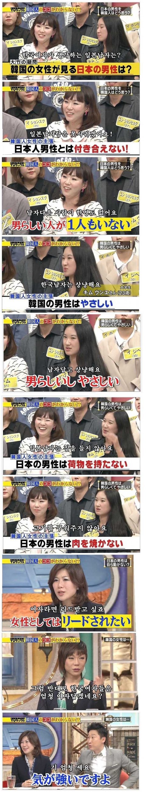 공영방송에서 여자 뺨을후려갈기고 벌칙으로 날라차기를하고 치마를벗기고 우리나라라면 상상도 못할일.. 요즘 일본여성들이 한국으로 많이들 시집오려한다던데.. 욘사마의 영향도컸고 기회되면 일본여성 한번들이대보세요 한국남자하면 거의다 반응좋아요.. 현지에 몇번가서 직접 확인해봤고요. 한국여성에게 하는정성과 쓰는돈 반정도만 해줘도 정말 놀라며 감사해 하더라고요.
