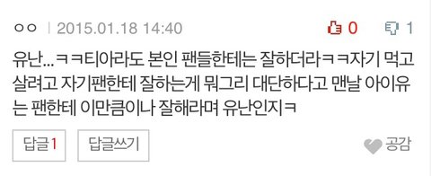 요즘에 팬들은 글 거의 쓰지도 않았는데 톡선 하나 간거에 까칠한 댓글들이 달려 ㅠㅠ 공감수도 자꾸 늘고, 말투도 여자라 더 무서워. 여기 여초 사이튼데 타팬들이나 여자들이 욕하기 시작하면 감당 안될거같아서 ㅠㅠㅠㅠㅠㅠ