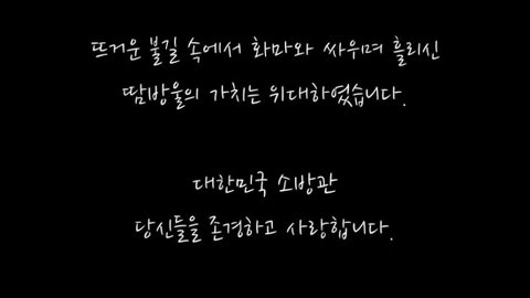 사진보면서 가슴이 찡해 눈물이 납니다. 저희 아시는분도 소방관이신데 현장에서 순직하셨습니다. 남겨진 가족분들도 너무 힘들고 돌아오지 못하는 그분도 맘편히 하늘에 계실까요? 제발 소방관님 복지나 처우좀 잘 해주세요.. 소방관님 힘내세요~ 사랑합니다..^^