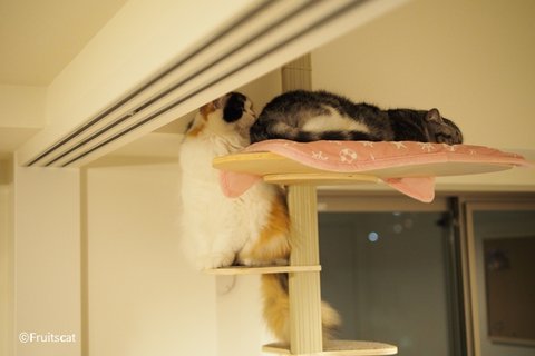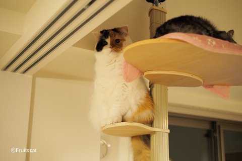 캣타워 꼭대기 위에서 놀던 퐁즈가 어색하지 않았는데..