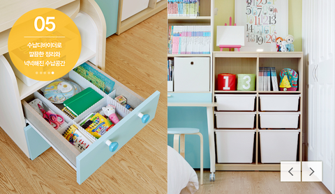 체계적인 수납환경이 만들어져서 아이가 스스로 쉽게 정리정돈 가능할거같아요.