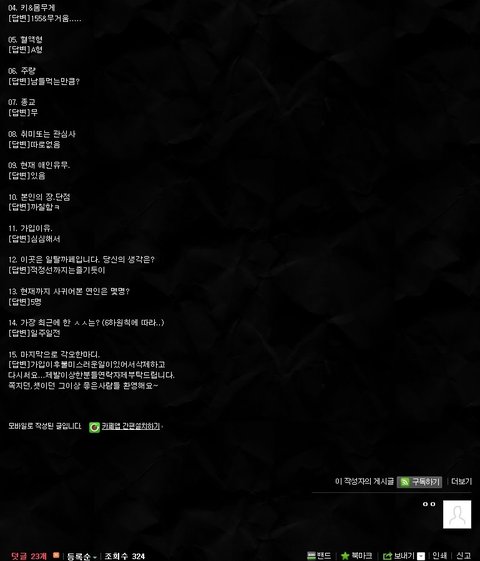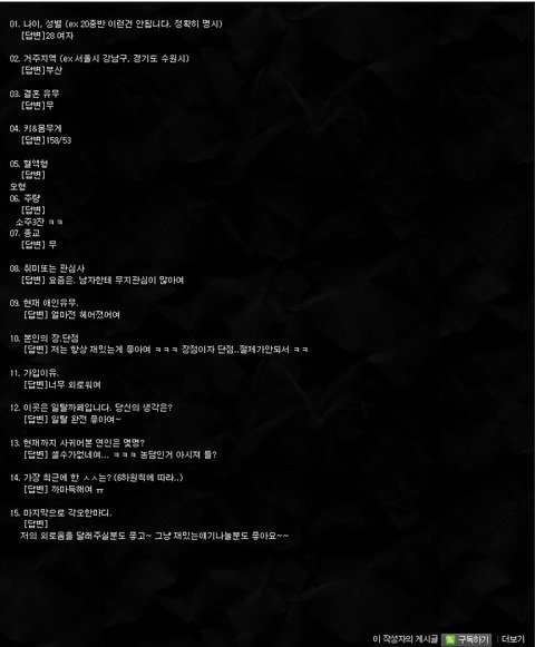 1개 게시물을 등록하면 자동 정회원으로 등업되는데 그 양식이 15문답인것같다