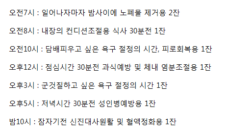 알람을맞춰놓고 정해진 시간에 수분을 섭취하는것이 중요하다고합니다.