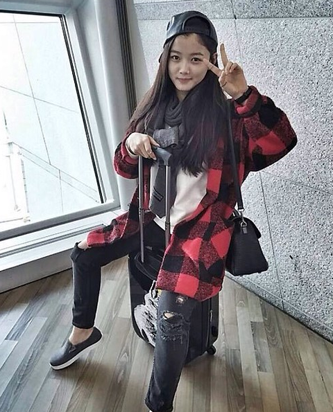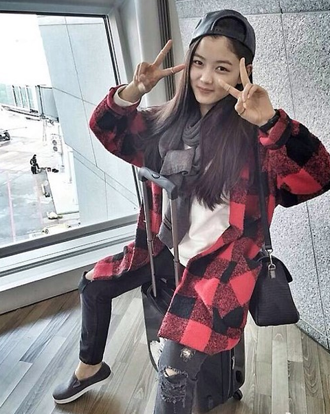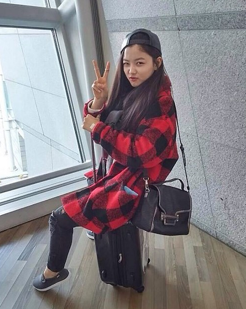 김유정 웨이보에 올린 사진인데 혼자 공항에도 가고
