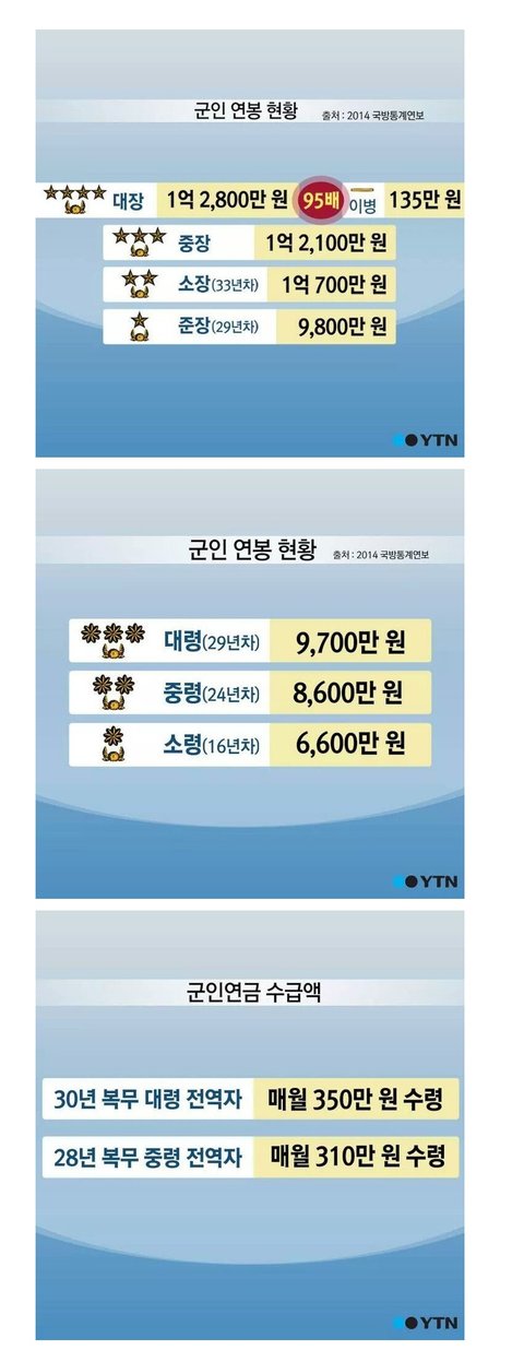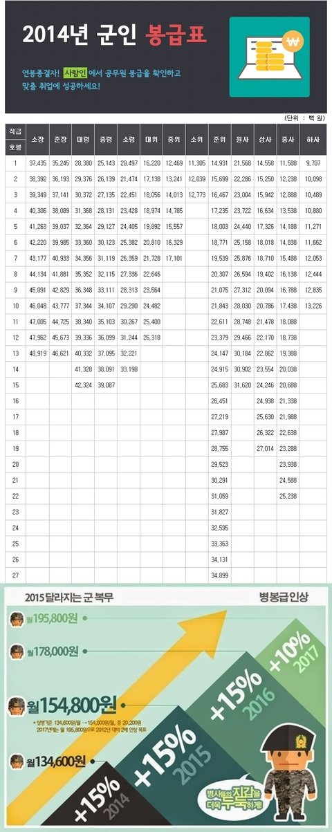 한눈에 보는 대한민국 군인 봉급....
