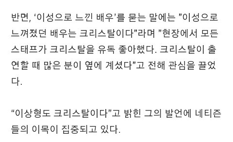 립서비스라고 안티들이 생각할 수도 있겠지만 크리스탈이 싸가지없는 사람이었으면 같은 사람끼리 언급도 안함.