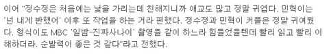 전 처음 보는 사람한테 그렇게 못하거든요. 정말 오랫동안 만나고, 많이 친해져야 그런 모습을 보일 수 있어요. 표현도 잘 못하고. 이런 스타일이에요. 정수정은…""