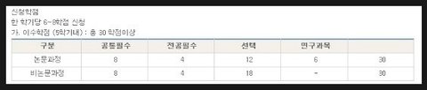1) 교과학점 30학저 이상을 이수하고 평점 평균이 3.0 이상