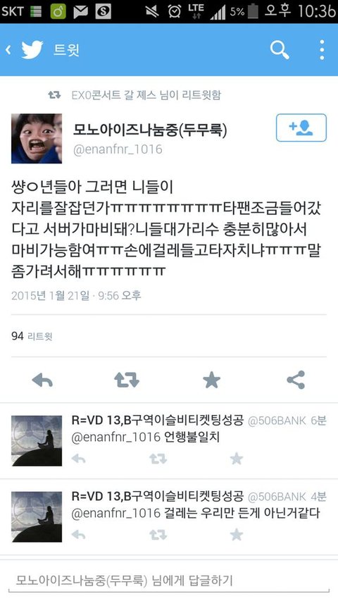 티켓팅끝나고 이딴글이 올라옴. (븉2 추정)