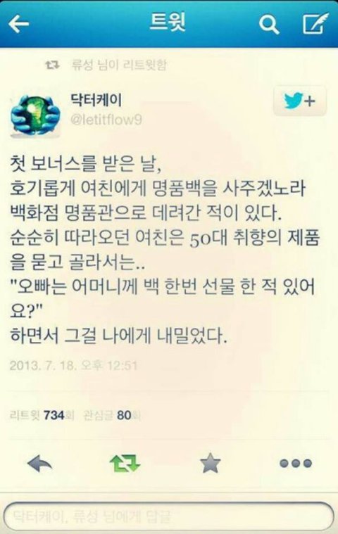 요약 : 지돈으로 지가 사고 여친한테 감동받음