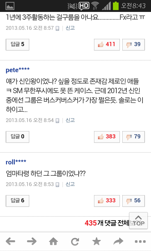 우연히 네이X 기사를 봤는데 기사댓글이 참 가관이더라. 레드벨벳도 행복 활동할때 그렇게 까대고, 엑소도 데뷔초반에 그렇게까대더니..서러워서 살겠나 진짜