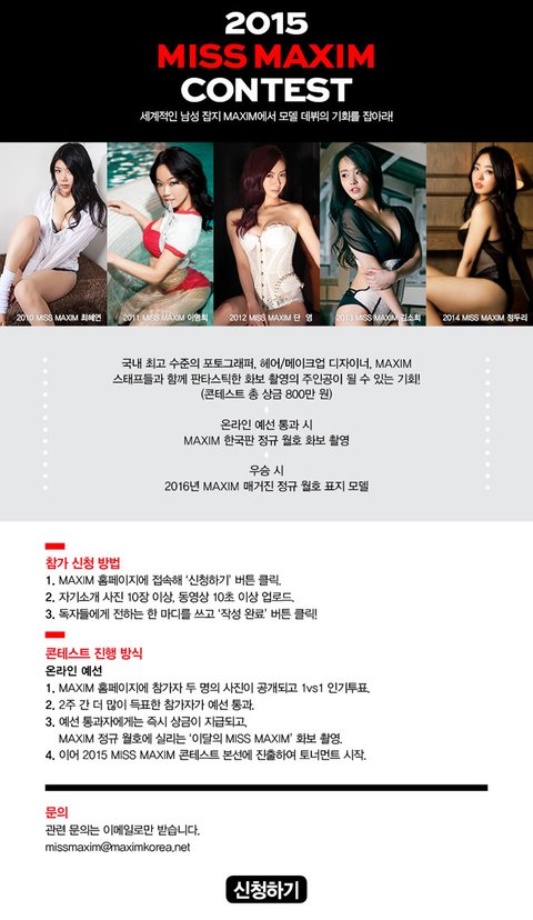 제가 사랑하는 남성잡지 맥심에서 이번 2015미스 맥심지원자 은아씨입니다.