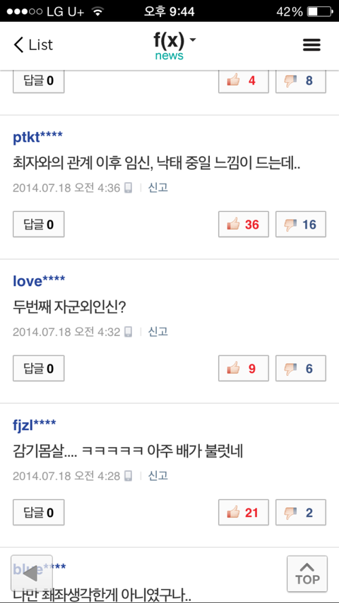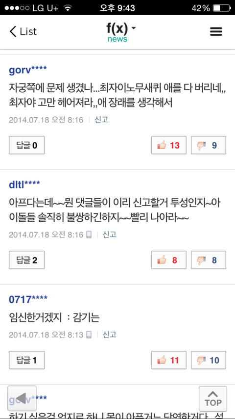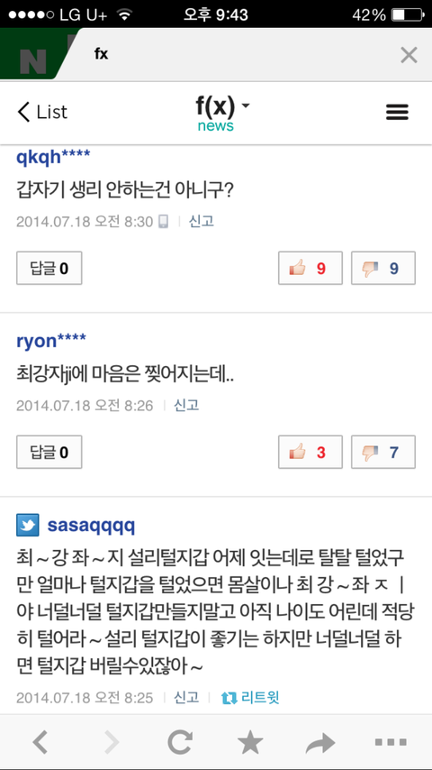 아파서 안나왔는데 댓글꼬라지 하고는 ㅡㅡ (사실 아팠다는거 구라라는 소문있던데..