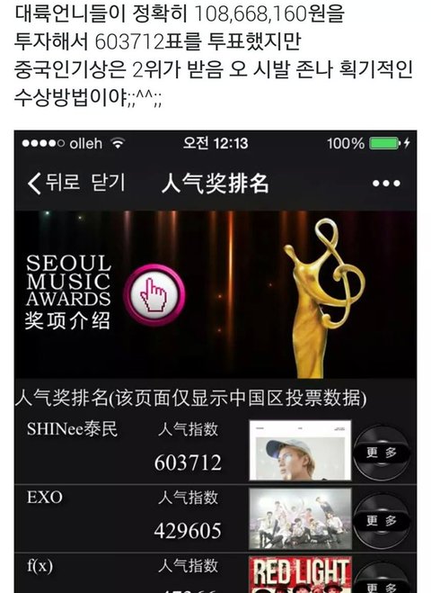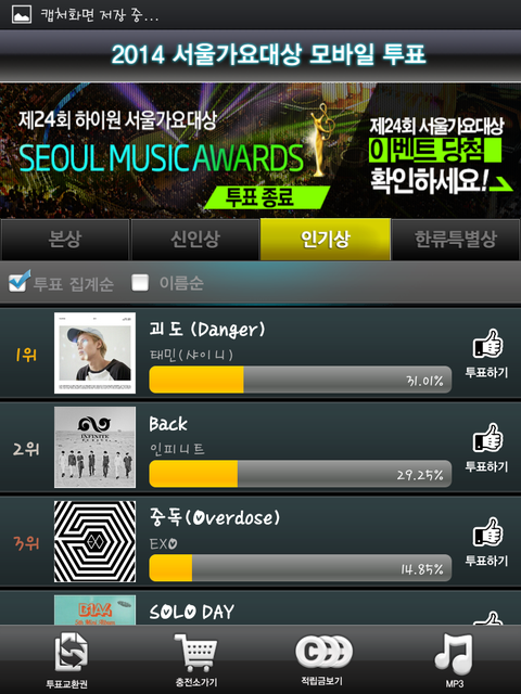 근데 우리가 여기서 60만표 이상으로 1위했ㅅ음ㅋㅋㅋㅋ; 돈 퍼부었더니 주는건 태민이 얼굴 살짝비쳐주기ㅋㅋㅋㅋㅋ;;;