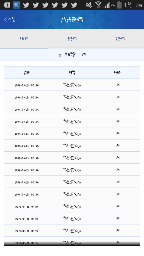 추천인 067c해줄수있냐ㅠㅠㅠ투표 해야되는데 ㅅㅂ 투표권이 몇개안남음..... 귀찮아서 캡쳐는 저따구지만 오늘꺼도 다하긴했는데 앞으로가 너무걱정이라....부타개휴ㅠㅠㅠㅠㅠ