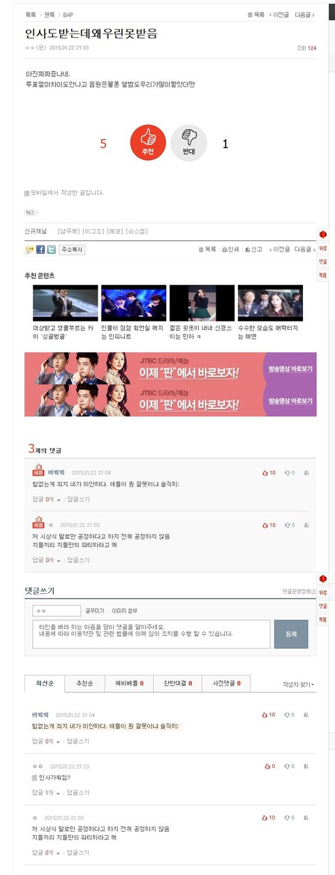 저기 인사가 뭐임? 이라는 댓글의 답댓글로 ㅂㅌ이라고 언급한거 다 확인했어