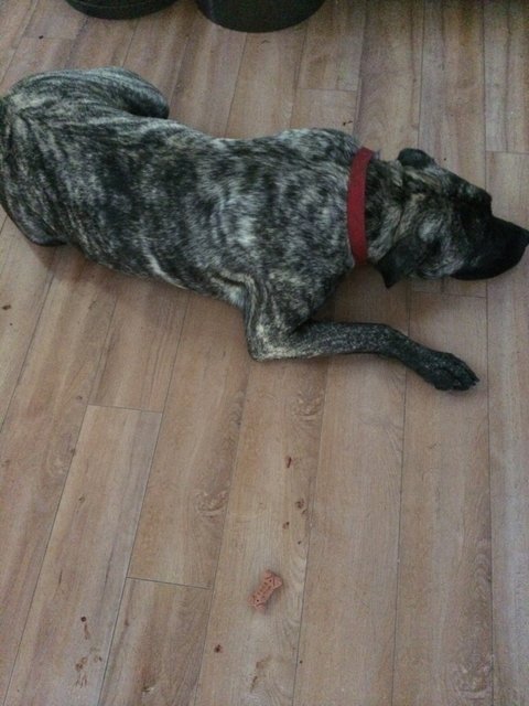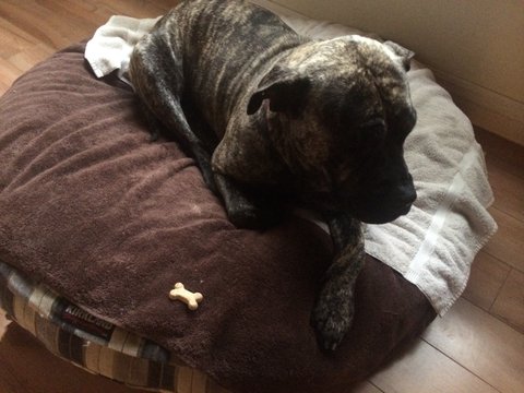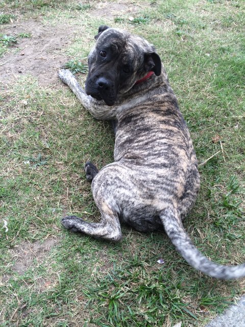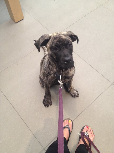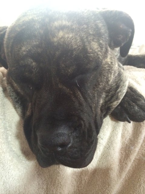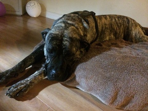 그래서 처음엔 반대를 했었는데, 그녀가 처음 집에 왔을때 사진에서 보던 프레사 카나리오들과는 다르게 너무 예쁘고 순해서 제 마음이 스르륵 녹아버렸죠. 신랑은 특히 요녀석이 구하기 쉽지 않은 순수혈통이라며 꼭 한번 키워보고 싶었다고 그러더군요. 애절한 눈빛으로 절 녹인 그녀는 그렇게 저희의 식구가 되었습니다.