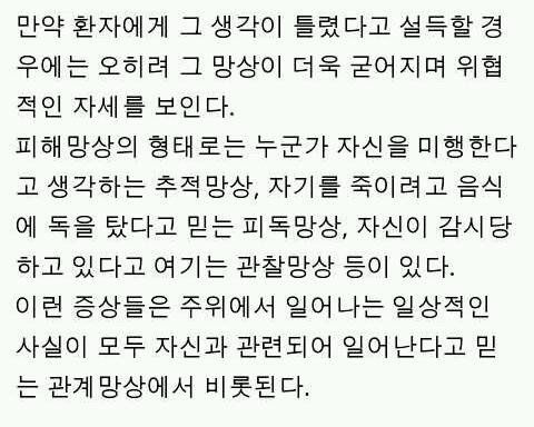 일단 사진이 피해망상증의 증상이에요