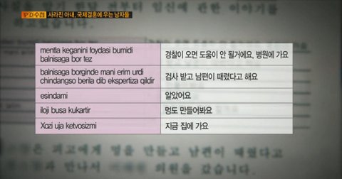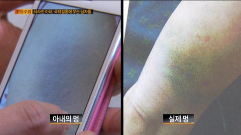 우즈벡 아내의 멍과 실제 일반적인 멍 비교 딱 봐도 다른걸 알수있음 아내는 이미 한국에 와서 휴대폰이 개통되자마자 우즈벡 남자친구와 메세지를 꾸준히 주고받음