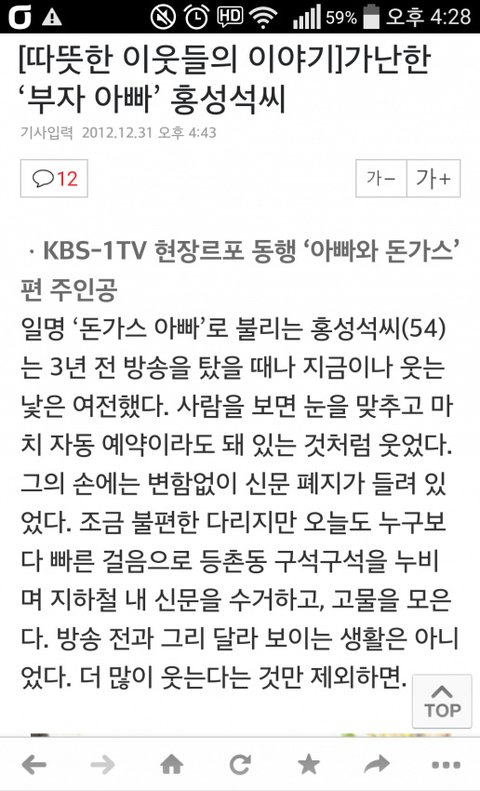 1. 예전에 몸이 불편한 아저씨가 자기 아들과 함께 폐지를 줍는 이야기가 방송에 탐