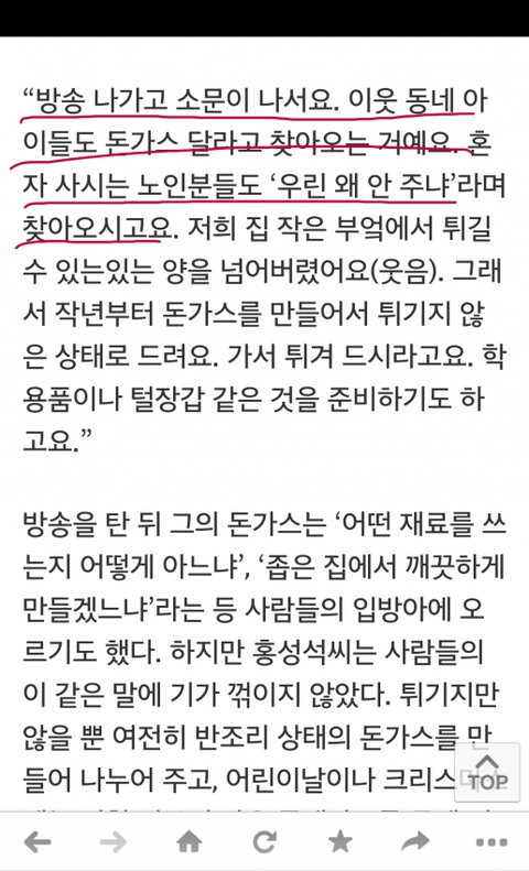 한달에 한번씩 불우한 아이들을 위해 돈가스를 튀겨줌