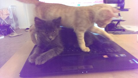 누가 고양이들 아니랄까봐, 컴퓨터 하는데 떡하니 올라가서 방해하는 장난꾸러기들 ![]()