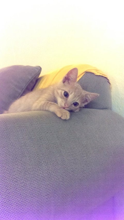 집에 오자마자 소파 위 점령- 눈이 너무 크고 삐쩍 말라서 외계인 같았어요 ㅋㅋㅋ