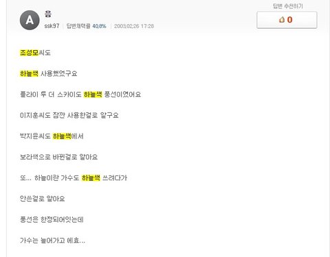 하늘색을 애초에 맨처음 쓴건 조성모 팬덤, 박지윤 팬덤이었음.