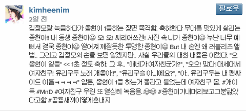 샤이니종현의 트윗에 글이하나올라왔음