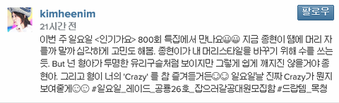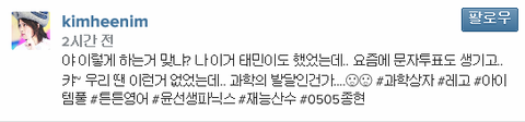 우주대스타 김희철님의 축하응원사진에보답한 트윗ㅋㅋㅋ