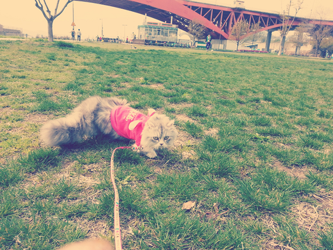 작은딸은 이렇게 해줘야 산책하는 산책 냥이.;ㅅ;