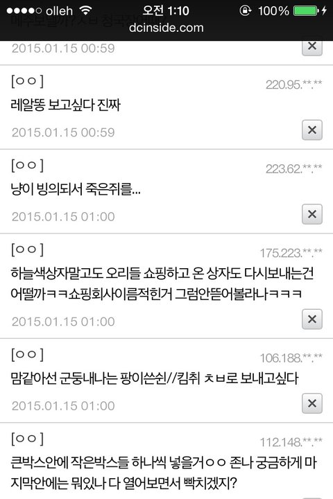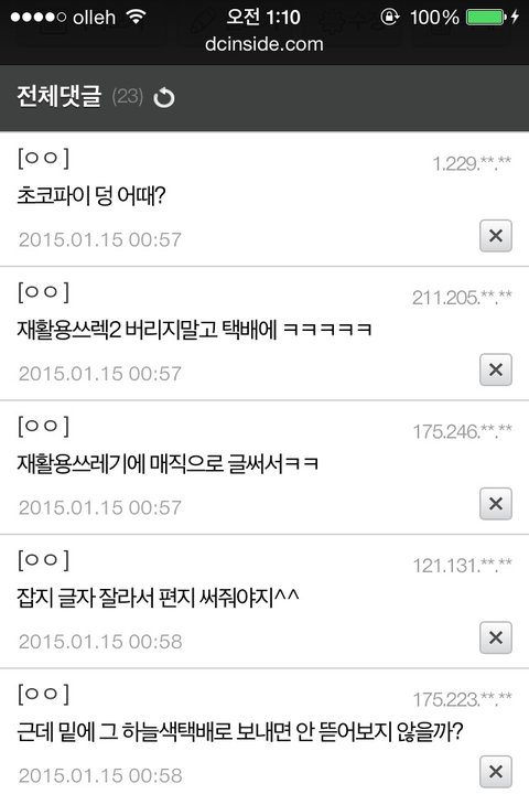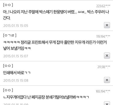 카페로 가기 전 지오디 갤러리에서 팬지분들이 나누었던 대화내용을 이미지로 첨부합니다. (극히 일부임+계속추가할예정) 마지막 휴지사진은 어질러진 상태말고, 휴지에 지저분하게 낙서긴 되어있음을 보시라고 올린겁니다.