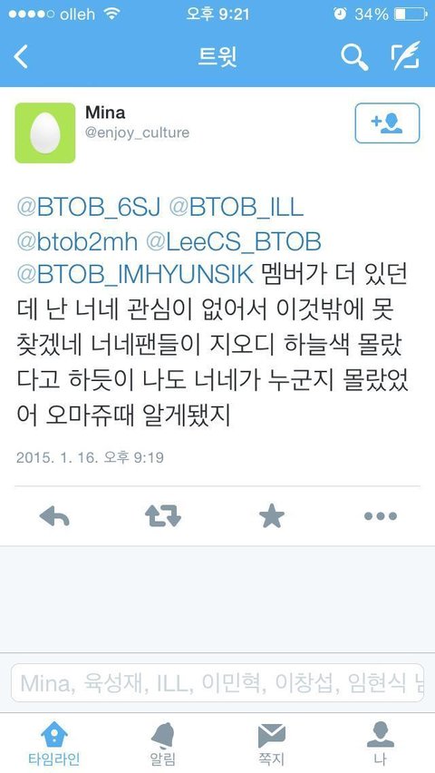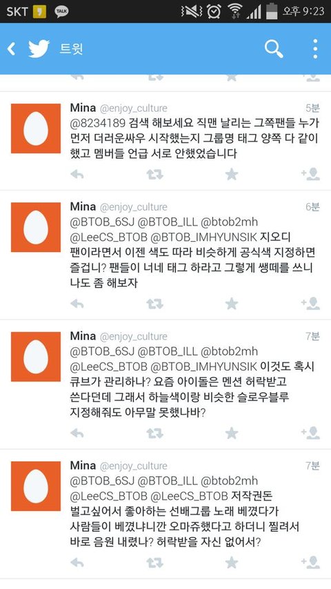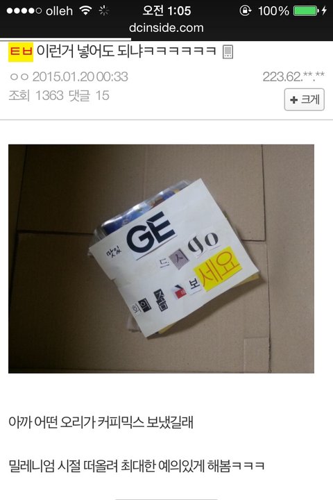 더해서 말하자면, 오늘 새벽 내내 지오디갤은 난리였어요, 이 문제로. 쭉 지켜본 입장으로 상황을 설명하자면 택배사건에 관여하지 않은 팬지들은 깔끔하게 사과하자는 입장이었고(비투비나 멜로디가 아닌 직접적인 피해를 받은 큐브에게만 사과하는걸로 정리) 그동안 카페는 비공개로 바뀌어 그 안에서 택배사건에 관여한 팬지끼리 아무도 모를, 같은 팬지도 몰라 답답해 했을 정도로 독단적인 행동을 진행하였고 그게 바로 해명글입니다.