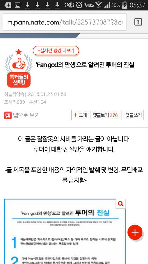 현재 톡커들의 선택 2번째에 있는 팬지의 해명글