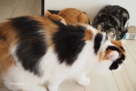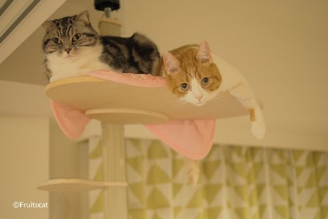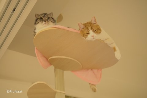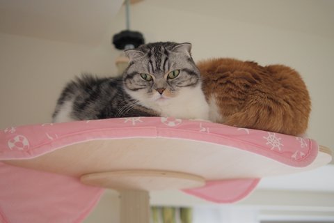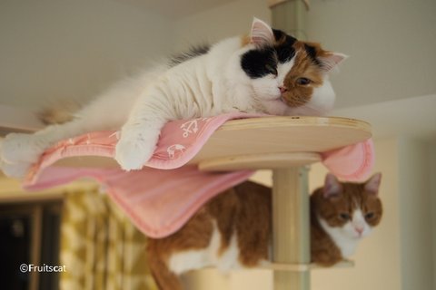 캣타워에 앙즈가 쉬고 있으면.. 어느새 유봉이가 올라와서는.. 뒷목 깨물깨물..