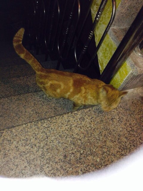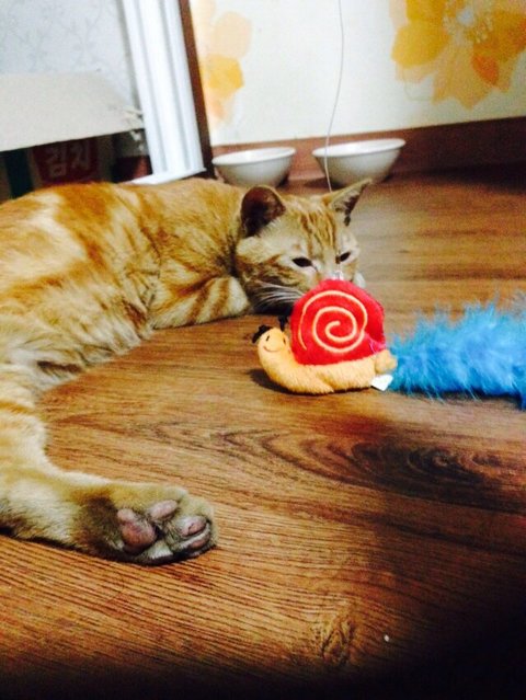 집고양이 같은데 밖에 나가고 싶어해서 데리구 나갔더니 차밑으로 요리조리 잘쫒아다니더라구요 큰개가 나타났는데두 멀리 도망가지않구 집계단까지 잘쫒아오눈 강아지같은 고양이에요